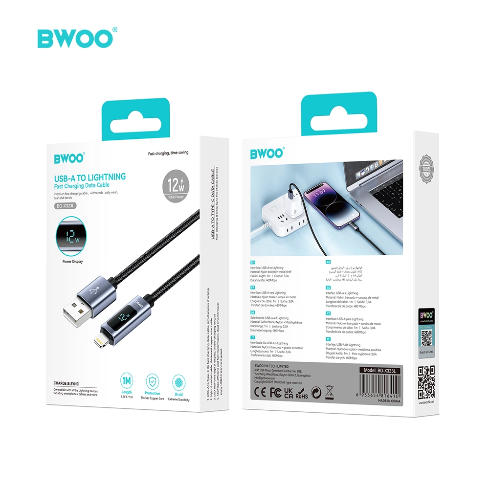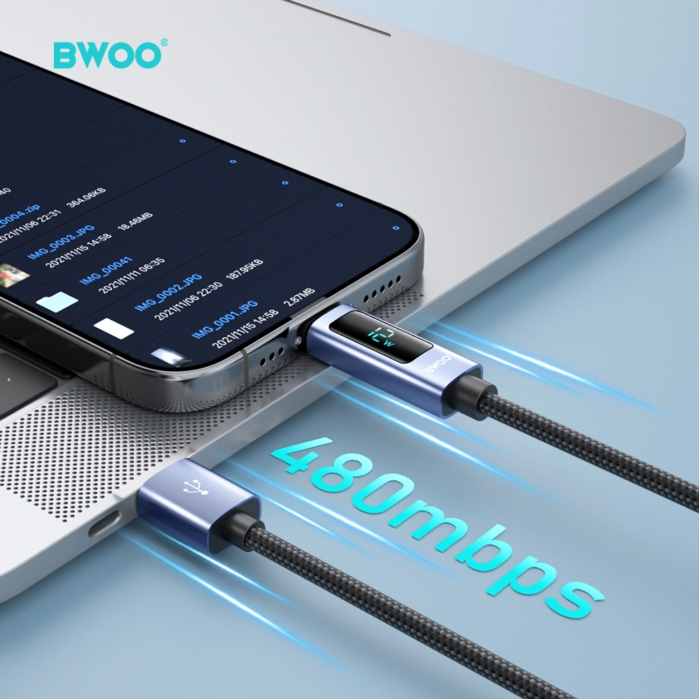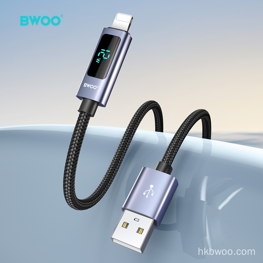 BWOO 15W Fast Charge USB A to Lightning Cable LED Display 3A for iPhone