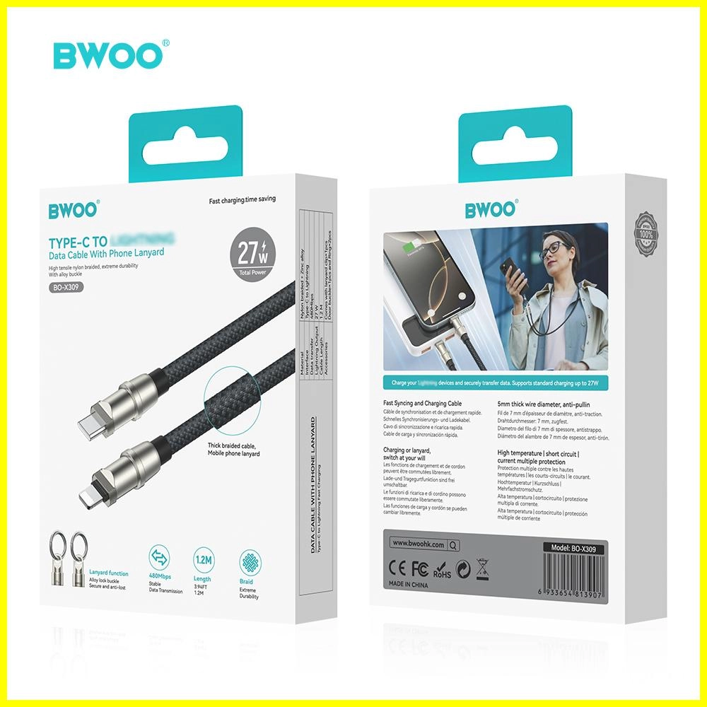 Discover the BWOO mobile phone lanyard data cable for iPhone—featuring fast charging, durability, and a convenient neck strap design. This detachable lightning lanyard charging cable ensures reliable power on the go. Perfect for seamless, secure iPhone charging anytime.