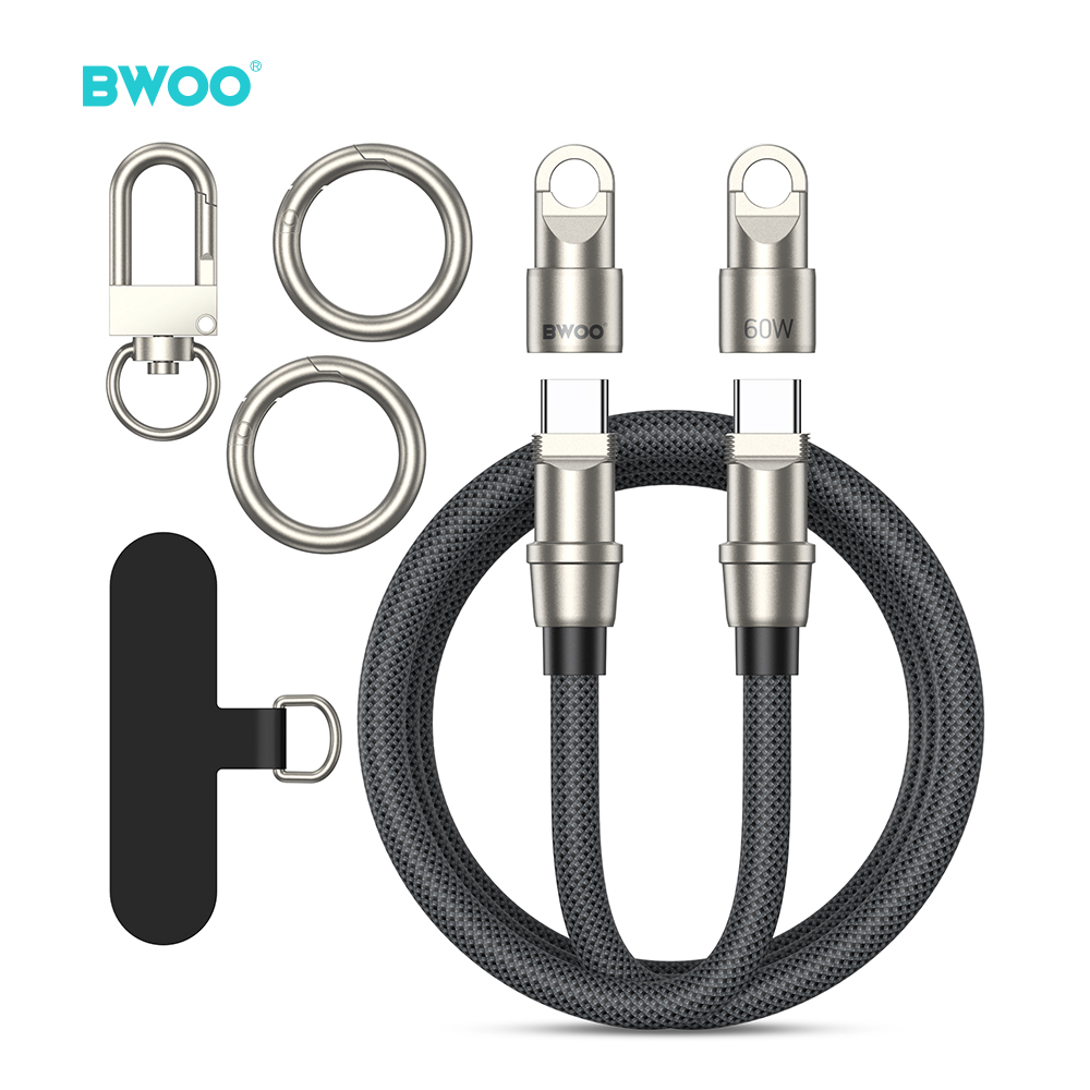 Experience fast, durable charging with the BWOO 60W PD Fast Charging USB-C Lanyard Cable. This braided, portable USB-C phone lanyard cable features a detachable design, ensuring convenience and reliability for on-the-go power needs. Perfect for seamless USB-C charging.